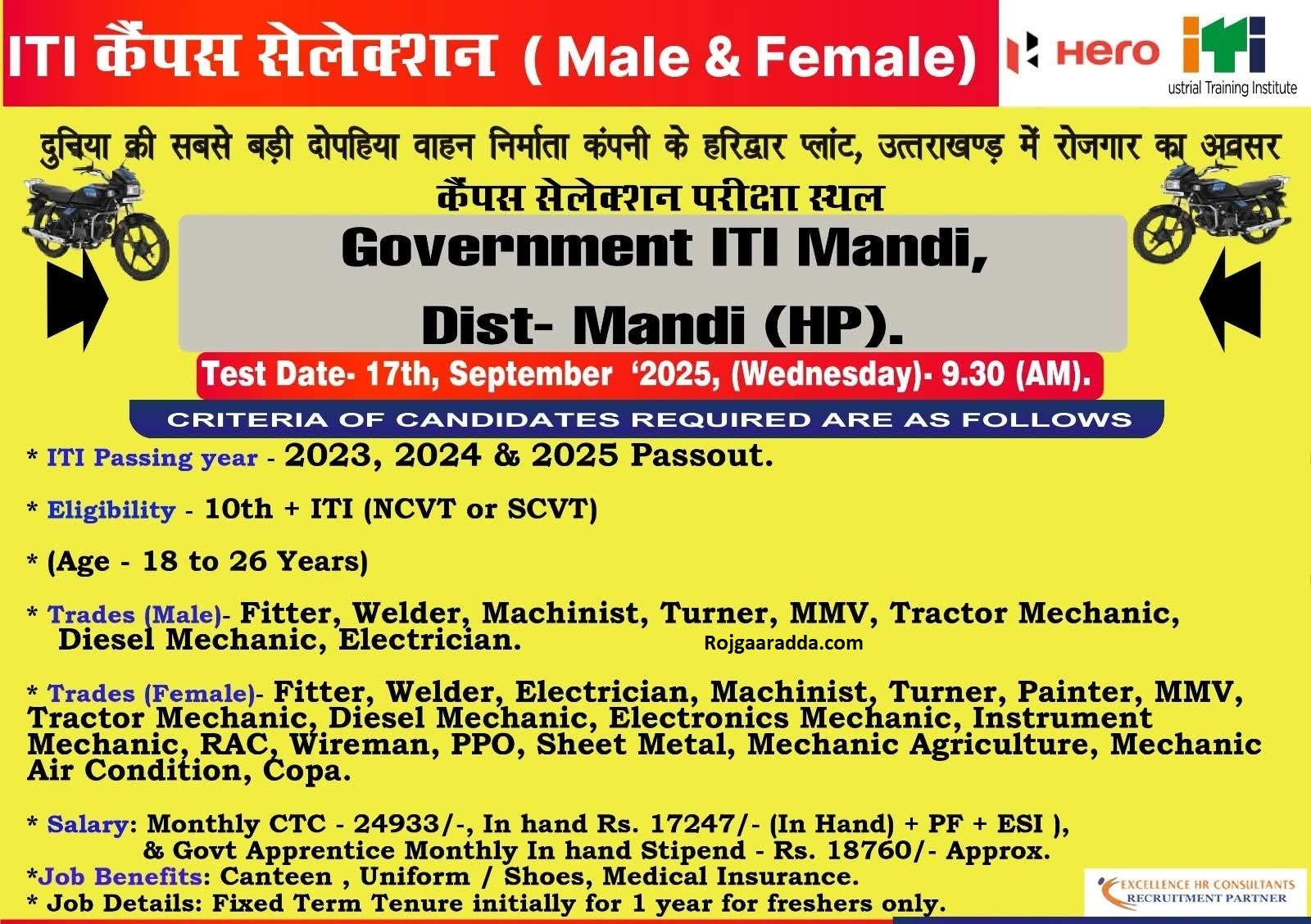 Hero MotorCorp Haridwar Uttarakhand ITI Campus Placement 2025 | Male & Female | ITI Pass … Read more